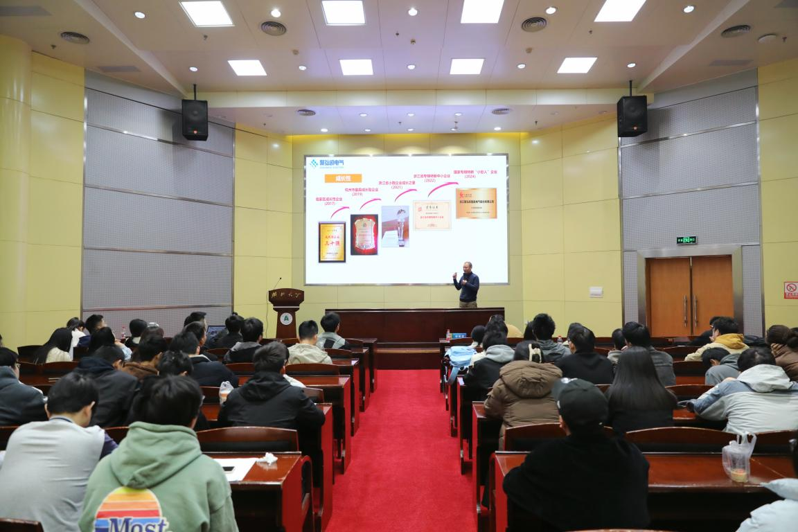 为深化校企合作,助力学生高质量充分就业,3月20日上午,浙江聚弘凯智能电气股份有限公司专场招聘宣讲会在思诚厅举行,新能源学院应届本科毕业生、研究生毕业生踊跃参加,现场座无虚席。