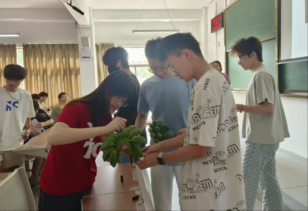 值得一提的是,学院特别设置了“禁止蕉绿”环节。同学们在青涩的香蕉上签名,待其成熟后食用,寓意着将焦虑一同“消化”,缓解压力。