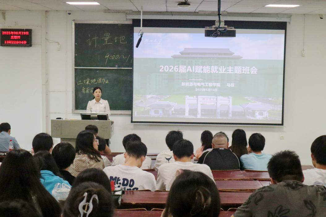 6月19日下午,太阳成集团tyc33455“AI赋能就业”主题班会在教3-201举行。主题班会由学院党委副书记马菲、兼职辅导员王金瑞共同带领。