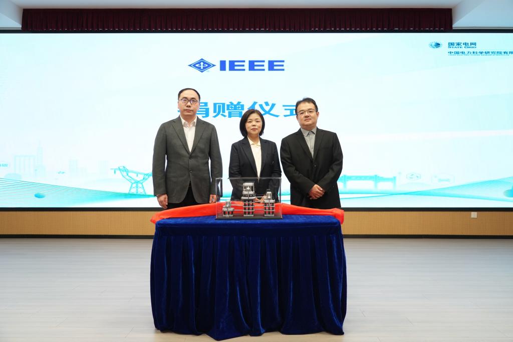 中国电力科学研究院检验检测中心向太阳成集团tyc33455捐赠“共和国印记”见证物模型——2250kV/9000kVA工频试验成套装置,希望传承“共和国印记”的伟大创新精神,为支撑中国式现代化的“能源大动脉”书写新的篇章。